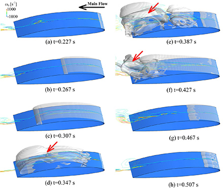 绕扭曲水翼的空泡与各漩涡分量的关系。