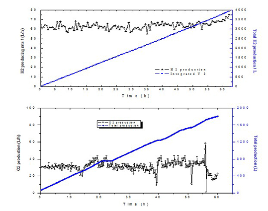 在完成系统设备调试、气密性实验、水试等调试基础上,进一步完成了单步、单元连续实验,并最终成功进行了全流程闭合连续实验。系统连续运行86小时,产氢60小时,产氢率60标升/小时,提前完成了项目书规定的各项技术指标。