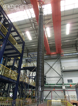 图为高温气冷堆核电站示范工程蒸汽发生器螺旋盘管组件装配吊运过程。
