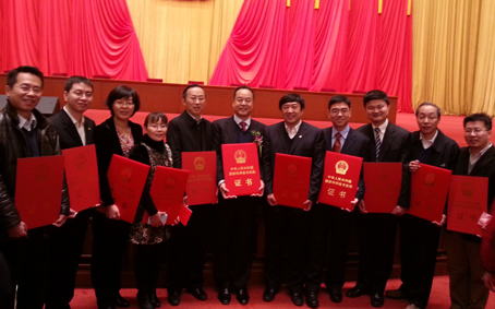 图为辐射成像创新团队部分成员在2013年度国家科学技术奖励大会上领奖合影