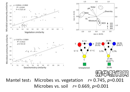 图为青藏高原微生物群落结构与环境因子之间的强烈关联。
