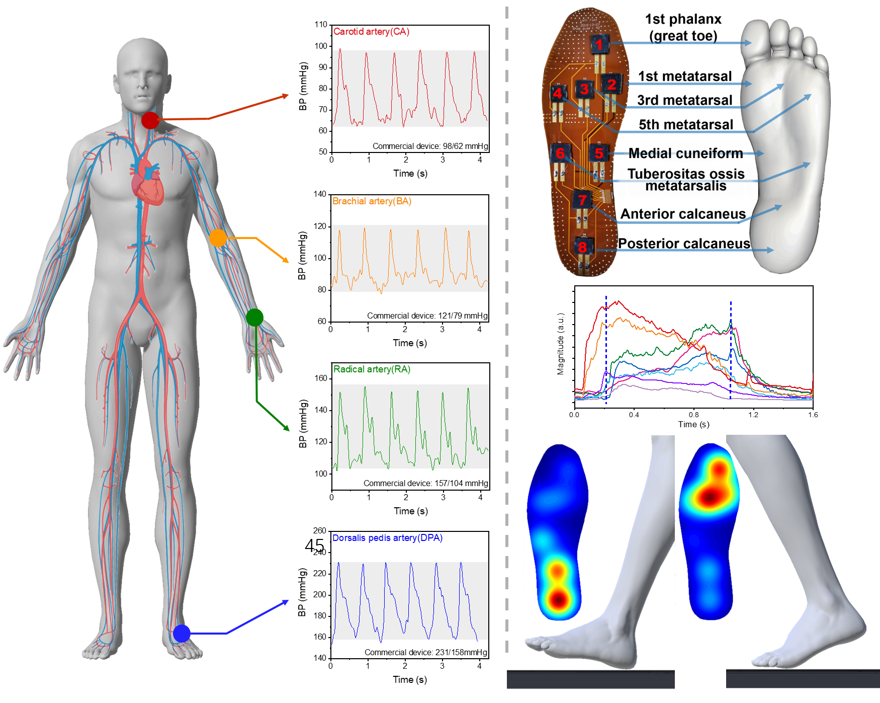石墨烯压力传感器实现人体多部位血压测量以及步态监测系统