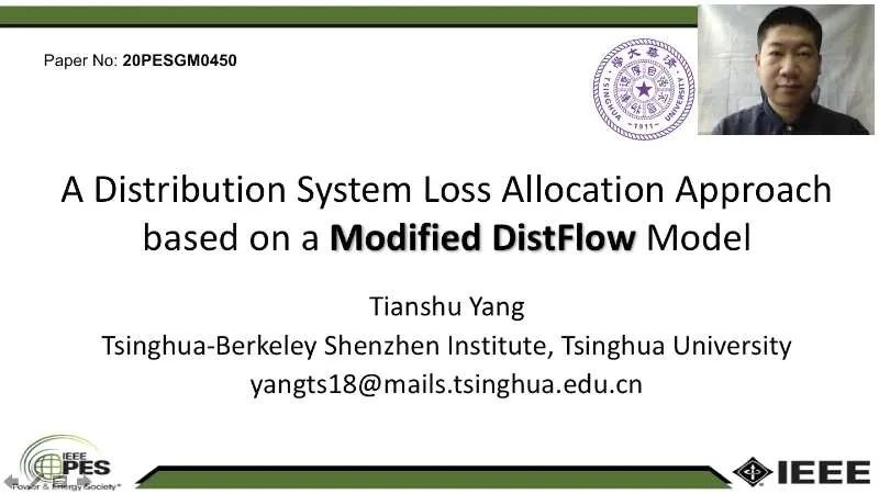 硕士生阳天舒作为第一作者的论文《DistFlow模型的配电网网损分摊方法》(A Distribution System Loss Allocation Approach based on a Modified DistFlow Model),在2020国际电气与电子工程师协会电力与能源协会年会上获得最佳论文奖。该论文的合作者有清华-伯克利深圳学院郭烨教授、博士生邓莉荣、硕士生舒韩、孙宏斌教授、研究科学家沈欣炜博士。阳天舒在论文中提出了一种冷启动的线性线路潮流(cold-start linear branch flow model),基于该潮流模型再提出了一种针对配电网的网损分摊方法,解决了电力市场中以边际网损收费产生网损剩余的问题。