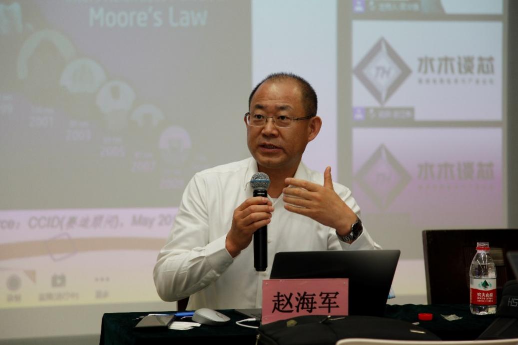 赵海军作了题为“集成电路产业的发展规律、特点及趋势”的报告。他形容集成电路行业是能给人类带来幸福体验的行业,他表示,集成电路行业保持高速发展有三个基本要素,一是完整的基础理论,二是龙头公司和领军人物的引领,三是摩尔定律和产业链配合。这三个要素共同让集成电路行业后劲十足、不断挺进新赛道。