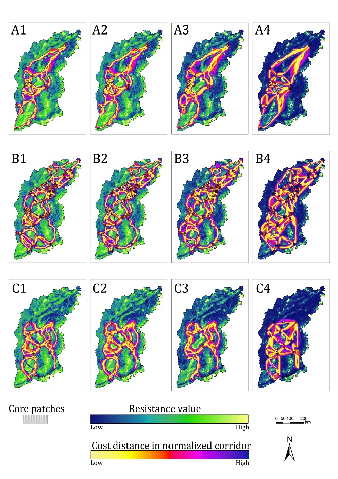 图1 大太行区域荒野地网络规划的多情景分析