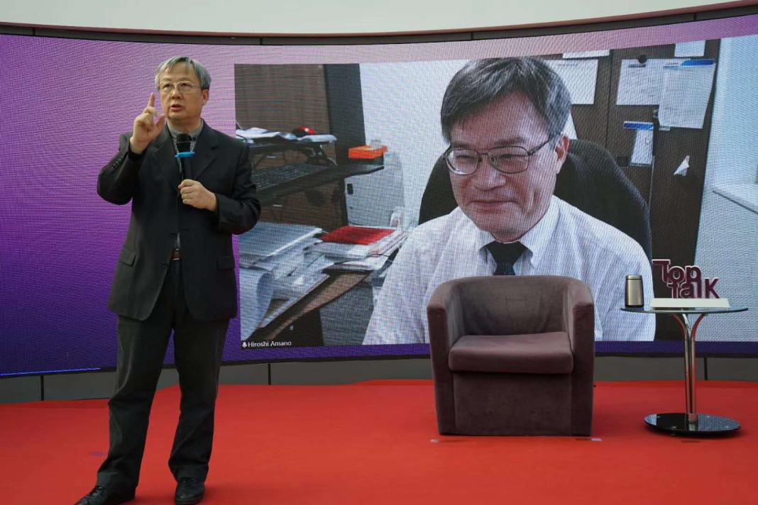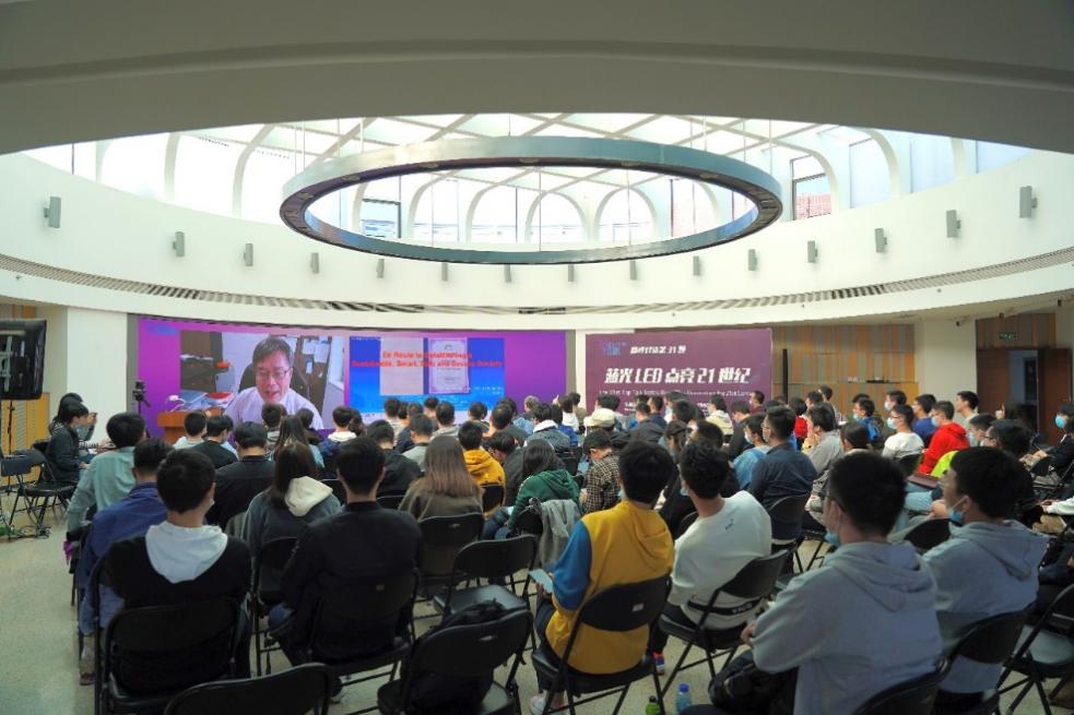 在主题分享环节中,天野浩围绕“通往智能安全可持续社会之路”展开,从蓝光LED的发明史切入,讲述了合成高品质氮化镓(GaN)晶体的探索之路。如今,蓝光LED已经走进千家万户,生活电器上的显示屏幕也从红绿屏变成彩色,其问世是产学研结合的出色案例。天野浩是高效蓝光二极管的主要发明者,带来了明亮而节能的白色光源,也因此获得2014年诺贝尔物理学奖。天野浩介绍了其团队关于GaN的研究进展,表示未来GaN器件将在新能源汽车、无线充电领域发挥更加重要的作用。最后,天野浩鼓励清华学子继续努力,投身科研事业,为电子事业的发展贡献自己的力量。