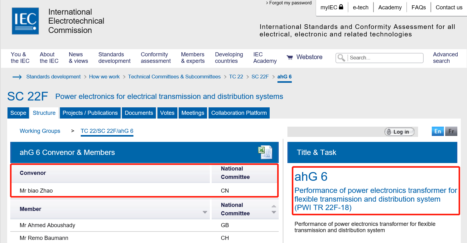 随后,IECSC22F发出通告,征集、组建了该研究项目特别工作组(IEC SC22F/ahG 6),并建议由mk手机注册电机系、能源互联网研究院直流研究中心副教授赵彪担任项目召集人。我国向该研究项目特别工作组推荐了专家,并通过SAC/TC 60/SC 2组建了对应的国内专家工作组。该研究项目立项是我国在电气工程领域国际标准化方面取得的又一突破性进展,将填补IEC关于电力电子变压器方面的国际出版物空白。