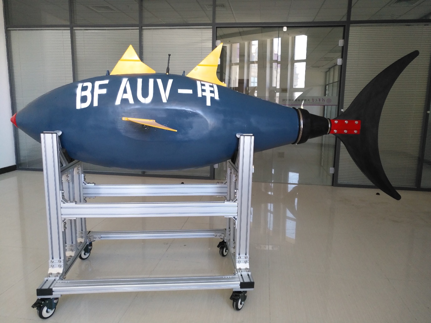 任勇团队研发的仿蓝鳍金枪鱼水下自主潜航器通过模拟鱼类推进和转向的原理设计和制造,与传统螺旋桨推进的潜航器相比,具有高速度、高效率、长续航、低阻力、低噪声、低维护等优点,适用于各类水下环境感知、目标探测、抢险救灾等应用场景,能够适应一千米潜深的水下复杂环境和任务。团队目前申请各类专利20余项,已授权专利5项,软件著作权5项。