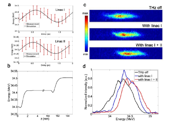 图4 级联太赫兹加速实验结果
