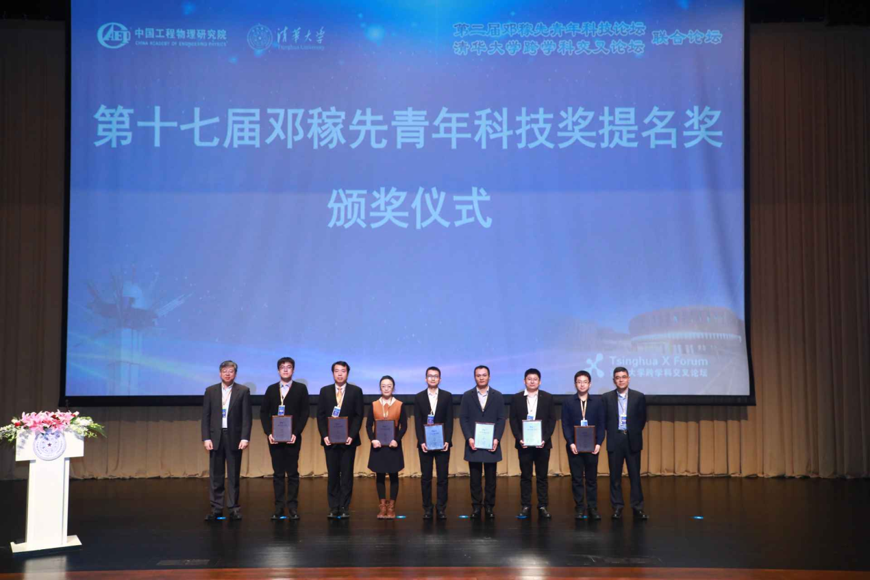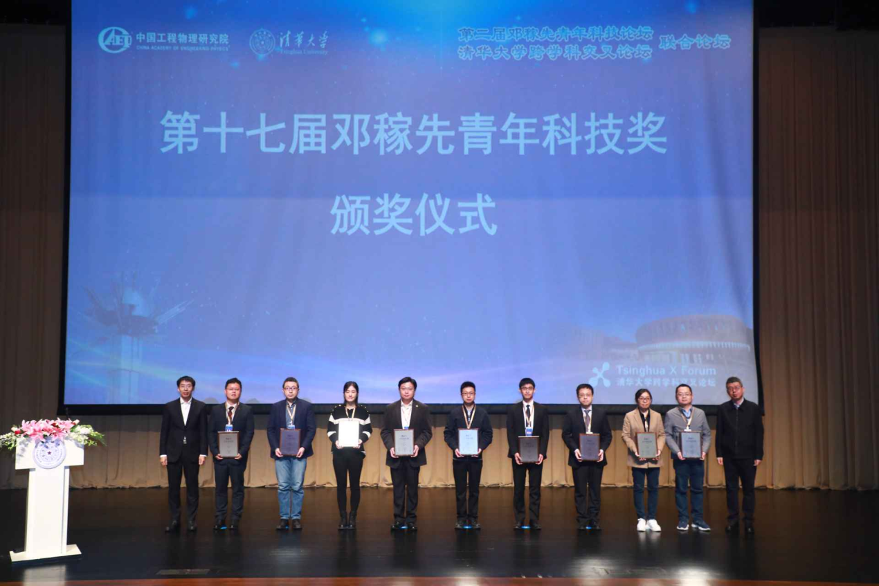 何颖波、曾嵘为第十七届邓稼先青年科技奖获奖者颁奖