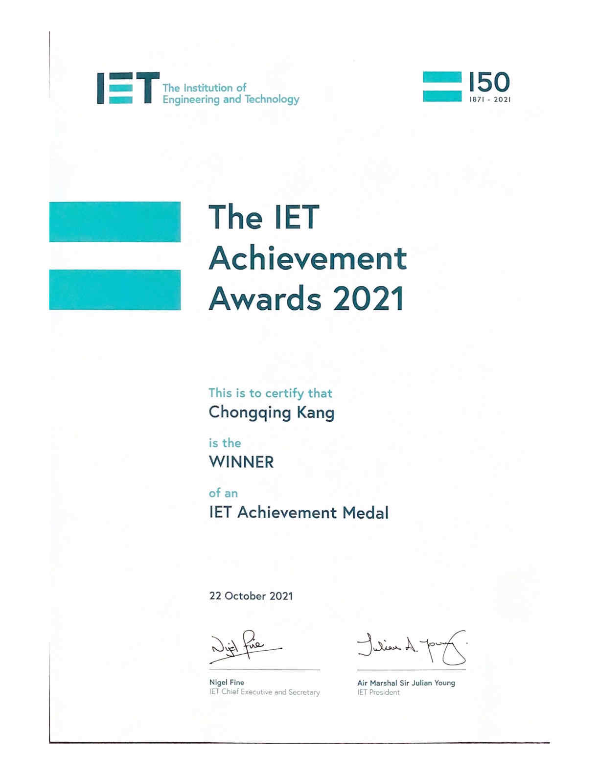 英国工程技术学会是工程技术领域全球领先的专业学术学会,总部位于英国伦敦。IET成就奖专为世界各地的顶尖工程人才而设置,表彰他们在行业中产生的卓越影响以及在工程和技术领域的重大杰出贡献。