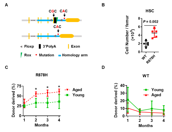 图2 衰老的骨髓促进DNMT3A R878H驱动的克隆性造血