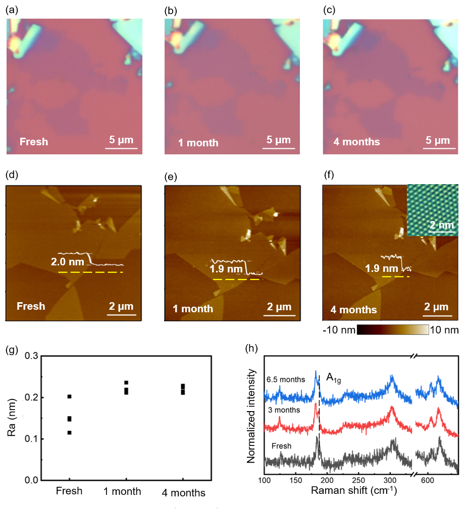 图3.二维β-ZrNCl的环境稳定性