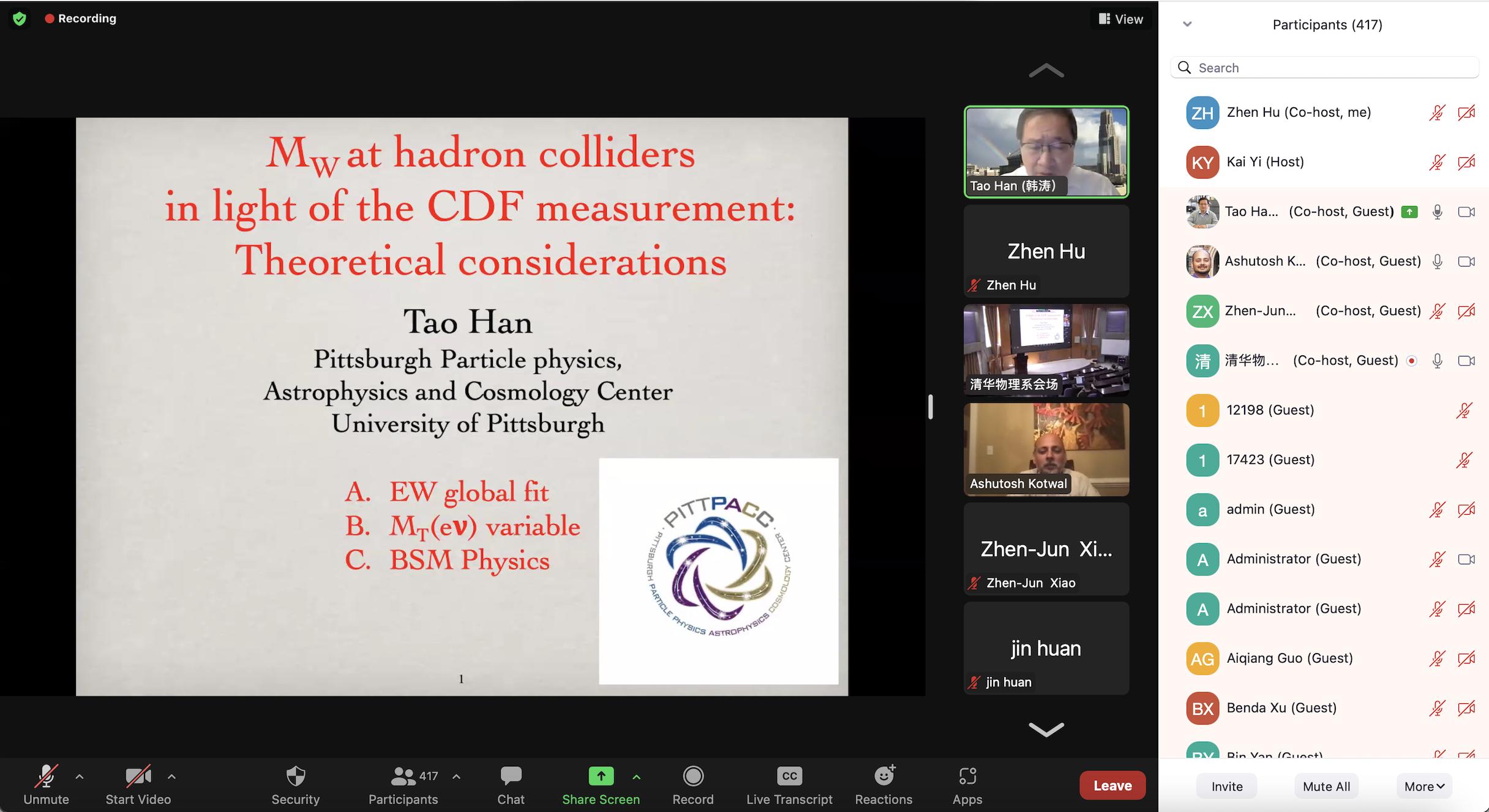 为了促进中国物理同行之间以及与国际同行的学术交流,mk手机注册、南京师范大学、中科院高能物理研究所、北京大学联合发起并主办了本次“W玻色子质量研讨会”。4月14日,来自国内外近百所高校和研究所的专家及学者约500人线上线下参加了会议,同时间段有近7000人次在线观看了直播。中国物理学会高能物理分会副主任、北京大学核物理与核技术国家重点实验室主任、北京大学物理学院院长高原宁院士,北京大学赵光达院士,中科院理论物理研究所张肇西院士,美国匹兹堡大学粒子物理天体物理宇宙学中心主任、美国物理学会“粒子物理与场论”分部主席韩涛教授,国家特聘专家、中科院高能所研究员祝翱(Joao Guimaraes da Costa)等参加了会议和讨论。