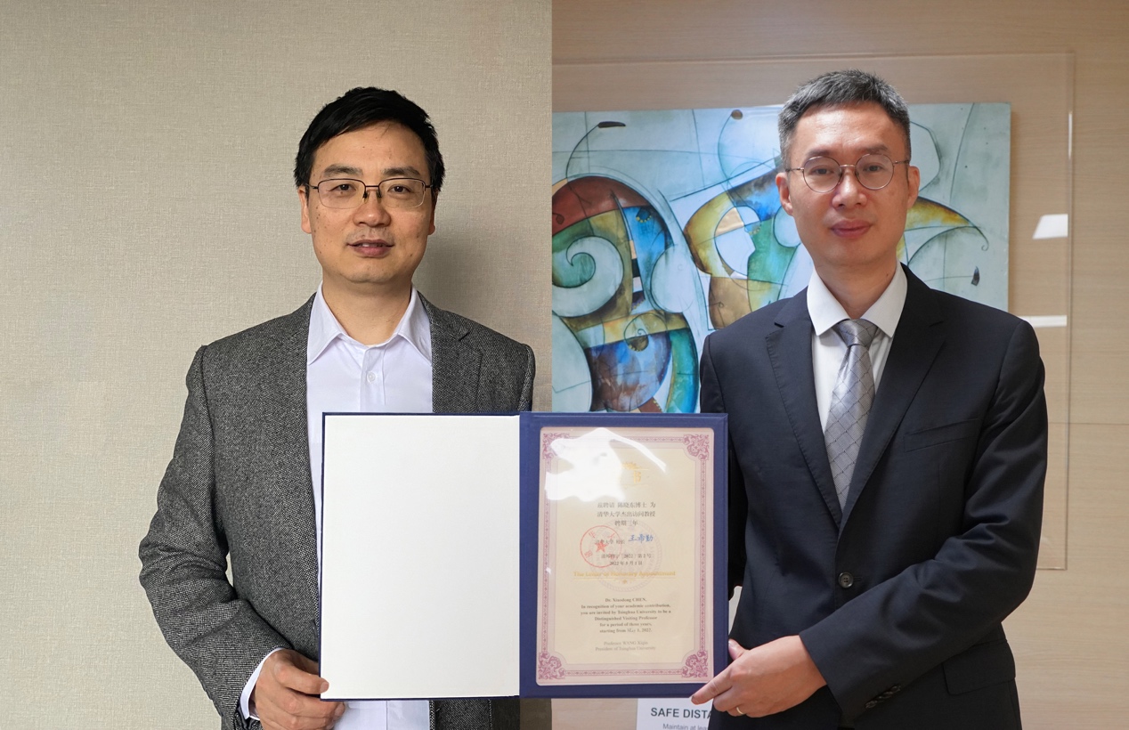 冯雪(左)为陈晓东颁发“mk手机注册杰出访问教授”聘书