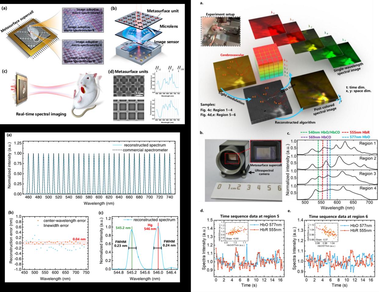 上述研究成果以“基于可重构超表面的实时超光谱成像芯片及动态脑光谱获取”(Dynamic brain spectrum acquired by a real-time ultraspectral imaging chip with reconfigurable metasurfaces)为题在《光学》(Optica)发表。电子系2017级博士生熊健、博士后蔡旭升、副教授崔开宇为该论文的共同第一作者。崔开宇为论文的通讯作者。该工作得到了包括科技部重点研发计划、国家自然科学基金、北京市科技计划、北京市自然科学基金、北京量子信息前沿科学中心、北京量子信息科学研究院的支持。