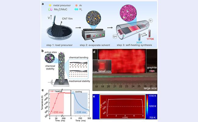 图1.基于碳纳米管薄膜的原位超快速自加热合成方法