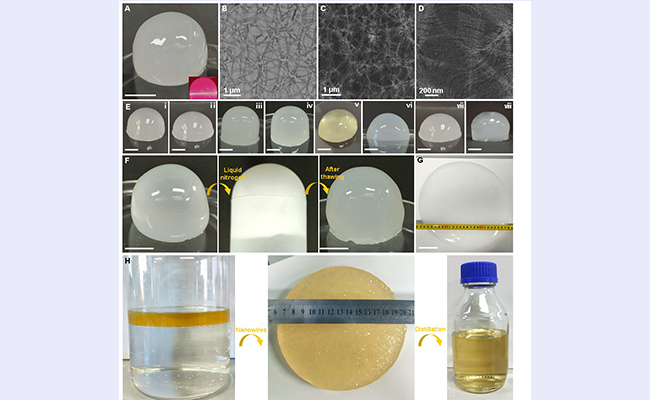 图1.亚纳米线有机凝胶的照片、结构及应用
