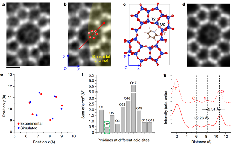 图2. 孔道内限域单个吡啶分子的原子级解析