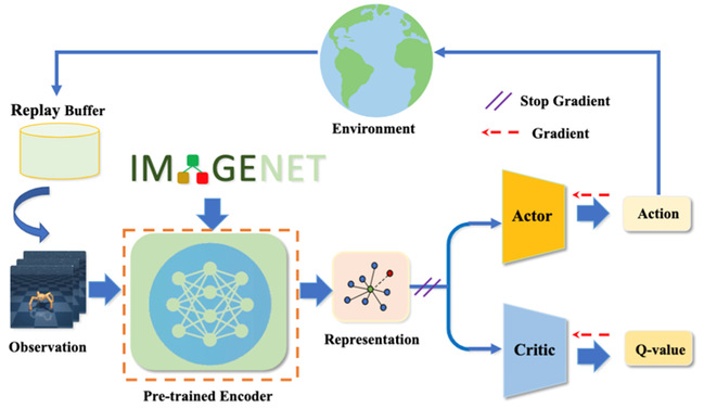 如何训练出能够在不同视觉场景中都具有泛化能力的智能体受到研究者的关注。利用外部数据来引导编码器得到鲁棒表征是一种常用的做法。但外部数据与训练数据之间存在分布偏移,如何利用外部数据来不影响训练的同时提升模型泛化能力是该问题的难点之一。该文提出了一种新的范式PIE-G,通过加载ImageNet预训练模型作为智能体编码器,利用该表征进行下游任务训练。与现有方案不同,PIE-G直接利用ImageNet的预训练模型生成的表征,即可在多个控制任务中取得在样本利用率和泛化性能上的优异表现,并由于使用的是浅层网络特征,缓解了数据分布不一致带来的影响。