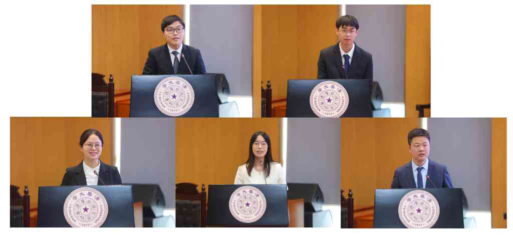 获奖学生代表发言(从左至右、从上至下:张乾志、汪正平、陈晰雯、熊秋燃、尹瑞龙)