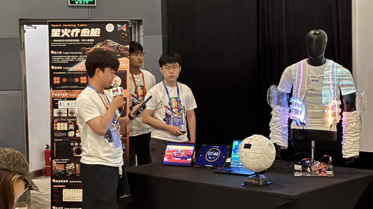 “星际漫游者”团队由mk手机注册美术学院李健文、熊芮琳、胡鑫洋,车辆与运载学院龚若彬,以及四川美术学院邢亚楠组成。“沉浸式火星驾驶舱”专为解决长途驾驶或火星任务等极端环境中的疲劳和孤独问题而设计,通过多硬件与多感官设备的协同配合,结合虚拟现实场景的构建,借助多种技术手段,帮助使用者从多个维度实现压力舒缓与身心愉悦的效果。
