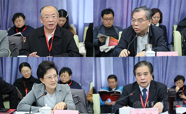 (从上至下,从左至右)王荣华、顾海良、靳诺、吴潜涛发言 张玉光 摄