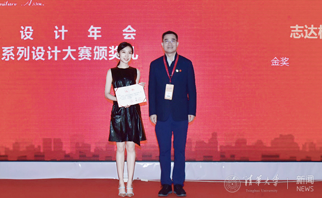张灿(左)和导师张宝华在第三届“志达杯”全国家居设计大赛颁奖仪式现场