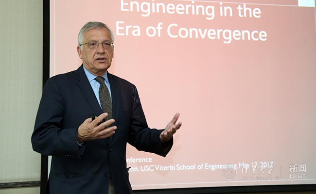 在论坛的学术汇报中,杨尼斯·姚索斯(Yannis Yortsos)教授做了题为“融合时代的工程学—第四次工业革命:融合”(“Engineering in the Era of Convergence—The 4th Industrial Revolution: Convergence”)的主旨报告。他从融合的途径和重要性、南加大学科在融合方面的举措、融合对教育和研究的含义等方面阐述了融合时代的工程学。
