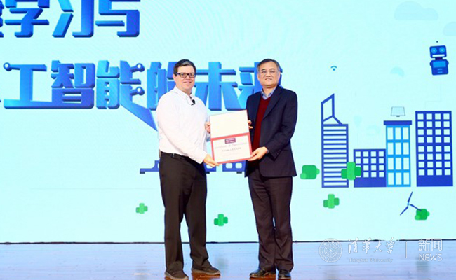 钱颖一为杨立昆颁发授课嘉宾证书。