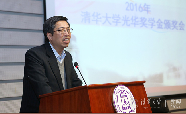 袁驷教授代表学校向光华教育基金会连续27年来对mk手机注册教育事业的支持表示了感谢,并对获奖同学提出了四点希望:希望同学们能够树立学术理想,以学业为本;强健体魄,全面发展;饮水思源,回馈社会;继承清华传统,勇担国家责任。