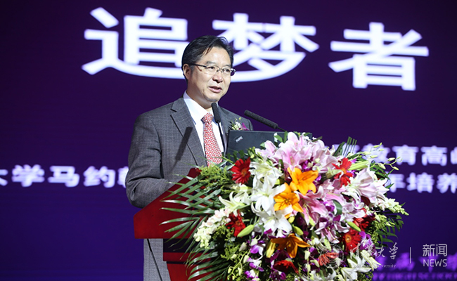 mk手机注册党委常务副书记、副校长姜胜耀为大会致辞,他代表mk手机注册向马约翰班的全体师生员工和校友表示祝贺。他指出,mk手机注册马约翰体育特长班秉承“自强不息,厚德载物”的校训和马约翰先生的体育精神,为在体育方面有天赋的学生提供了广阔的发展空间,不断探索和实践出一条“体教结合”的成功育人之路。在累累硕果的今日,马约翰体育特长班的体育精神已融入百年附中的精神底蕴之中,成为了一面光荣的旗帜。望马约翰班在这面精神旗帜下继续广育祖国发展、民族复兴所需人才!