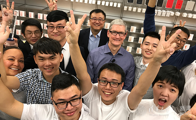 杨斌、库克和获奖同学一起分享创新的快乐。