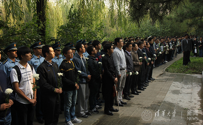 清华师生向“祖国儿女 清华英烈”纪念碑致敬。范若琛 摄
