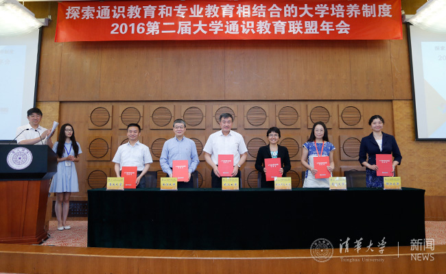六校共同签署《大学通识教育联盟章程》、加入联盟。记者 张 宇 摄