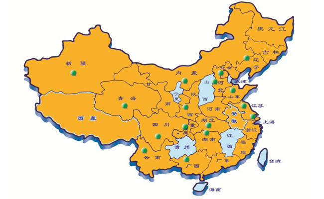 全国已使用超导滤波器的省市(橙色地区)。