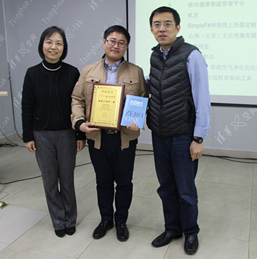 路演结束后,清华x-lab执行主任毛东辉与各个创业团队的创业导师一起,为创业团队颁发结业证书,这将为创业团队开启发展的新篇章。同时,在所有到场人员的投票下,淘气宝智能空气净化器和送姜钱包两个创业团队分获了最佳创新奖和最佳人气奖两个奖项,这也为他们的项目带来了进一步的肯定。