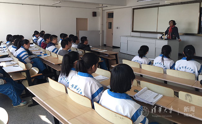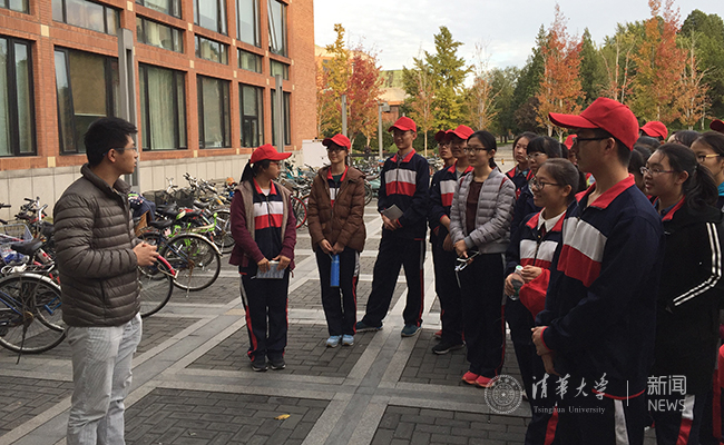 带领中学生参观清华园。