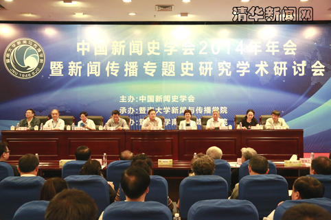 中国新闻史学会第四届理事会会长程曼丽、暨南大学校长胡军在开幕式上致辞。暨南大学副校长林如鹏、江南影视艺术学院董事长卢国忠等出席了研讨会。中国新闻史学会是中国新闻传播学界唯一一家全国一级学术团体,1989年4月经国家民政部正式批准成立,以研究中外新闻传播历史与现状、促进新闻传播学发展为宗旨,创始会长为方汉奇教授。25年来,学会极大推动和提升了中国新闻学教育和研究工作,已经成为一个强有力的学术共同体,目前拥有理事单位116个、海内外个人理事43位、个人会员239位,下设外国新闻传播史、网络传播史等7个二级学会,并有一个公开出版的学刊《新闻春秋》。本次大会前夕,学会得到江南影视艺术学院的100万元赞助,用于学刊的运行。学刊得到了中国人民大学书报资料中心的大力支持。