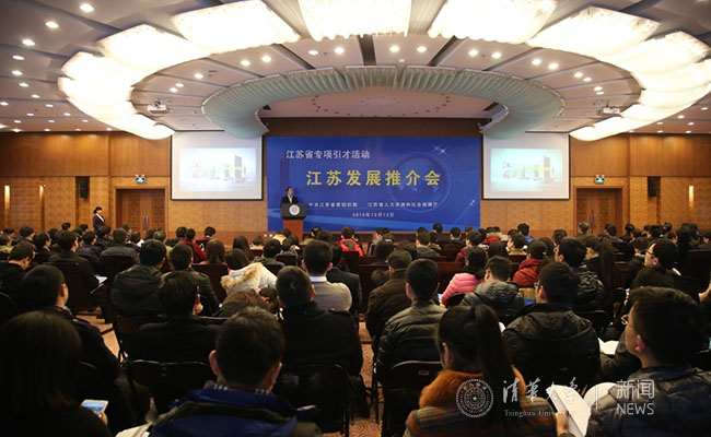 王奇围绕“江苏是底蕴深厚的好地方,江苏是率先发展的好地方,江苏是实现梦想的好地方”等三个方面,对江苏的经济社会发展情况与人才政策环境进行了介绍。他说,江苏赴清华举办专场招聘活动引才阵容强、需求层次高、政策待遇优,真诚地欢迎同学们选择江苏、扎根江苏。