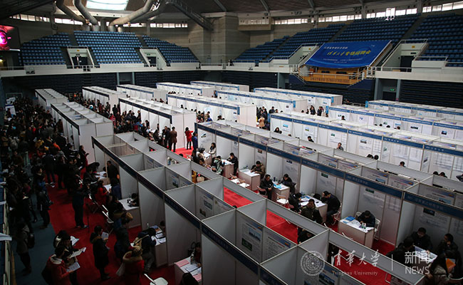推介会后,史宗恺、王奇一行到综合体育馆视察专场招聘会现场,看望应聘毕业生和企事业单位工作人员。招聘会上,185家江苏省企事业单位发布用人岗位8200余个,入场洽谈的校内外学生逾1200人。