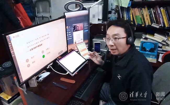 而在硬件方面,为了保证数学课中硬核的板书推导不打折扣,我们采用了Surface手写板电脑外加显示器的配置,同时,利用另一个台式电脑,以旁听生的身份进入课堂,随时观看学生端的情况。为了使用雨课堂还需要1-2台手机随时在身边。因为手写电脑的麦克收声效果不佳,会产生杂音相互干扰,教师端还采用了耳麦,声音效果好了很多。当然,老师适当出镜,能增加和同学互动的亲近感,所以,灯光的补充也很重要。