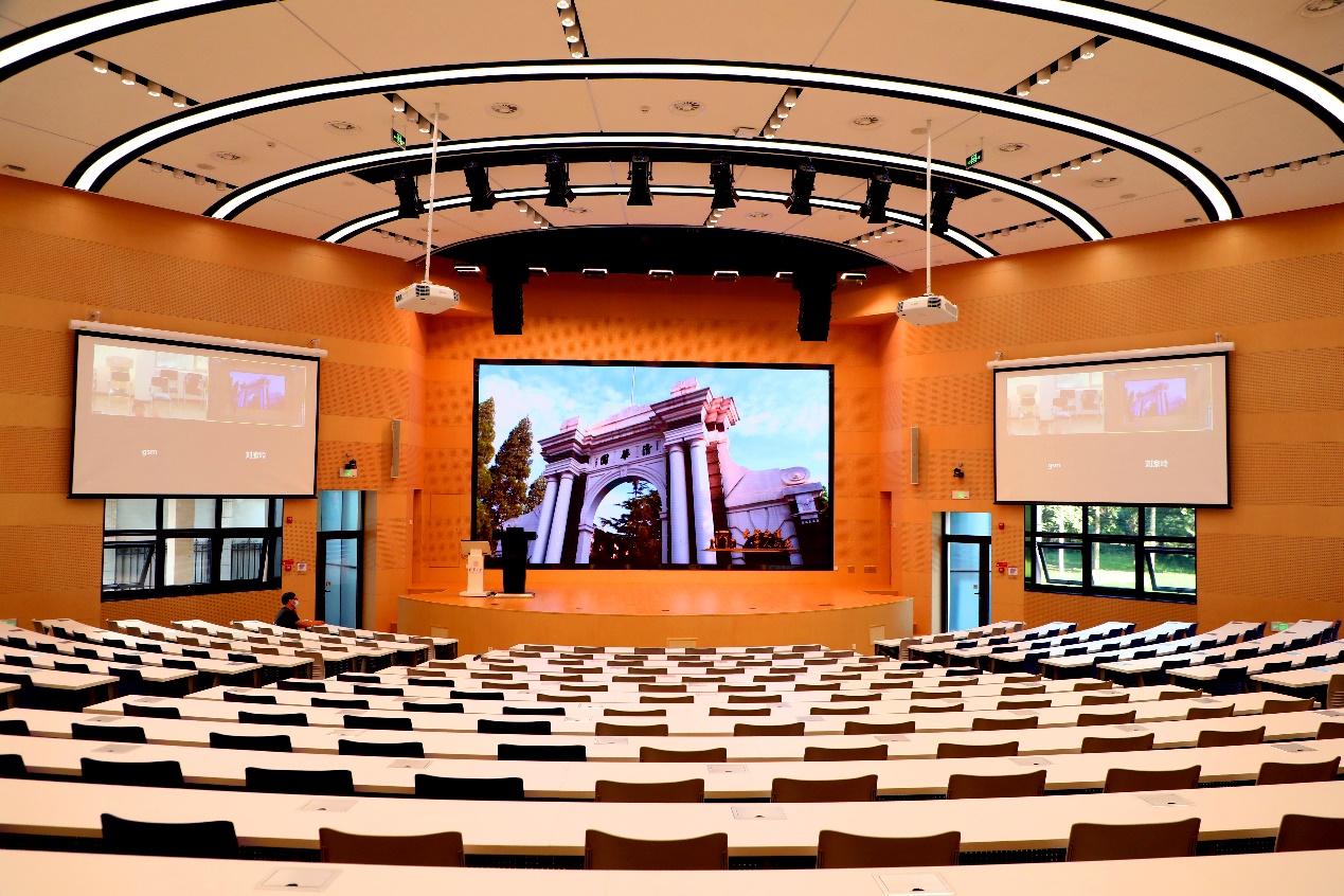 邱勇一行首先来到建筑馆报告厅检查装修改造成果,以及设备投入使用前的准备情况。改造后的建筑馆报告厅面貌焕然一新,此次改造不但更新了桌椅,还对教学设备进行了升级改进,增加了高清摄像头和多机位切换模式,打造新型多媒体教室。邱勇对报告厅的桌椅、桌面电源设备、投影设备等多方面进行逐一检查,同时格外关注线上教学设备与无线网络状况,也对教室的疫情防控常态化管理提出要求。