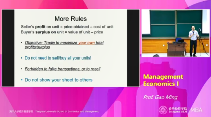 课上有个环节需要所有学生以买家或卖家身份现场模拟市场交易,对融合式教学模式带来挑战。高明带着两位助教一起琢磨了一周,重新设计了模拟交易。他们首先提前摸清了线上线下学生的人数,并决定将此环节全部搬至线上,解决了实验环境公平性的问题;其次是制作了可以随机发放的在线问卷,上课时请所有线下学生也登录Zoom,大家在讨论区以文字形式自由议价,在短时间内顺利完成了交易。经过实践验证,这一教学创新实现了线上和线下所有学生的高效实时互动,大大提升了线上学生的课堂参与感,为融合式教学模式提供了新的思路。“感谢学院各位老师不分昼夜的保障准备和全力支持!老师们各尽所长,集思广益,互相启发,受益良多。”
