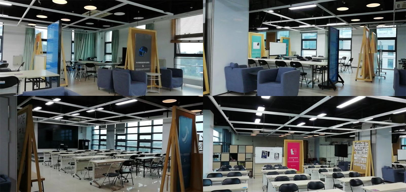 iCenter于李兆基大楼B565室建设了“学生科创实践空间”。空间中配备了多功能组合桌椅、多台显示器、白板、移动投影设备、临时物品存放柜、有线网络接口、无线WIFI以及插座等硬件设施,为学生提供了中小型团队学术研讨、项目交流分享、信息演示与发布、学生自习等活动使用的空间。