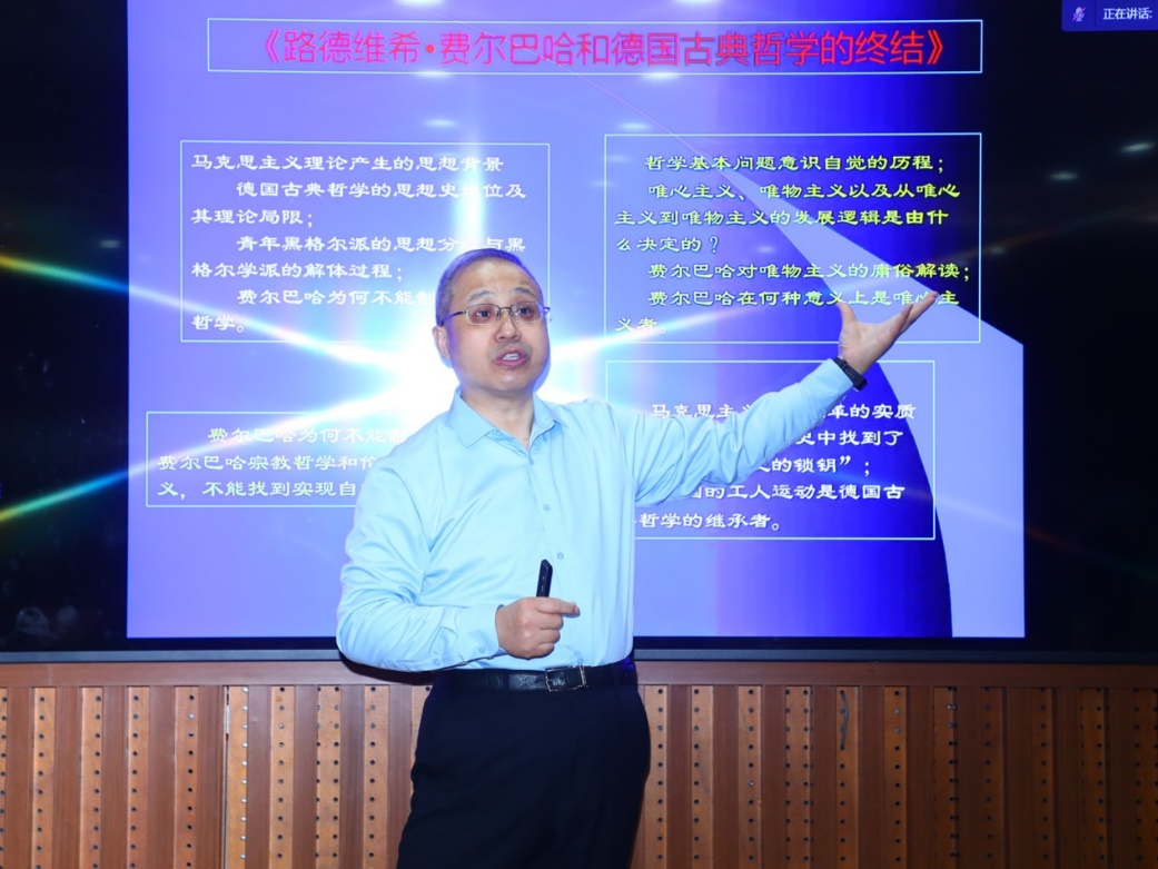 李成旺作题为“《路德维希·费尔巴哈和德国古典哲学的终结》对历史唯物主义的发展”专题报告。李成旺首先介绍了历史唯物主义产生的思想背景和马克思哲学自身的逻辑演进与生成历程,接着围绕文本四个章节的中心论点深入浅出进行解读,指出该书揭示了历史的真正动力和历史唯物主义的实质,马克思主义哲学实现了革命性与现实性的有机统一。最后,学员们针对讲座中遇到的问题积极提问,李成旺进一步解释了历史唯物主义发展的相关问题,并鼓励大家多读马克思主义经典著作,不断提升理论水平以指导实践。
