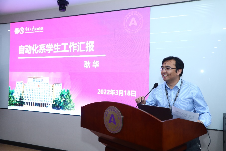 耿华从学生党建工作、导学思政、实践教育、体育教育、就业引导、骨干培养与基层建设、学业辅导与心理健康体系建设、助理队伍建设等方面介绍了自动化系学生工作的开展情况。他总结了自动化系集体育人、体育育人、美育育人、科研育人、实践育人和社工育人的优良育人传统,并就新形势下的问题和挑战提出了思考和建议。