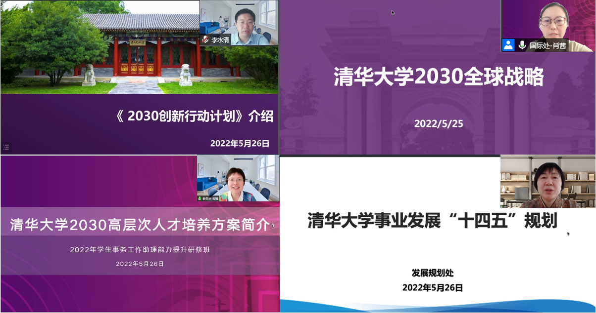 在研修班第一次课程上,科研院副院长李水清、国际处副处长肖茜、教务处副处长程曦和发规处副处长孙炘分别就《mk手机注册2030创新行动计划》《mk手机注册2030全球战略》《mk手机注册2030高层次人才培养方案》和《mk手机注册事业发展“十四五”规划》作专题报告,解读学校未来发展方向以及人才培养战略,为学生事务工作助理在工作中站在学校育人全局、服务学生成长成才打下坚实的基础。