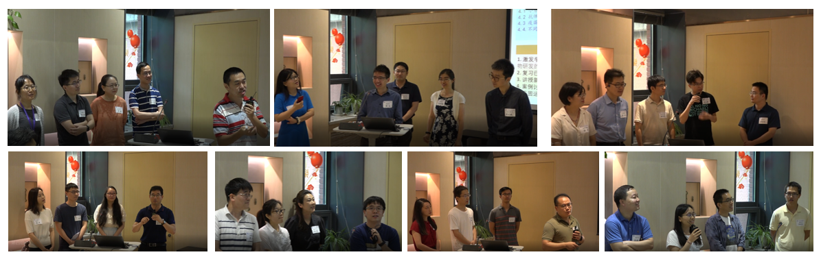 工作坊结束后,参加本次进阶项目的教师按照七个小组,开展了一场跨学科的教学设计头脑风暴式讨论。小组成员从各自不同学科角度出发,共同探讨、商定选题,设计、打磨了一堂课的教学设计,并在6日上午展示汇报了教学设计的成果。七个小组分别就“博弈论在气候谈判中的应用”“抗病毒药物研发概论”“循环神经网络”“人工智能技术概述”“智能微花园设计与制作”“5G/6G微博材料及器件”“无所不在的热”等课程主题进行了精彩的教学设计展示。在副教务长、教务处处长、为先书院院长欧阳证,土水学院副院长吴璟和李斌锋的点评和引导下,各小组教师就展示进行了热烈的讨论和充分的交流。
