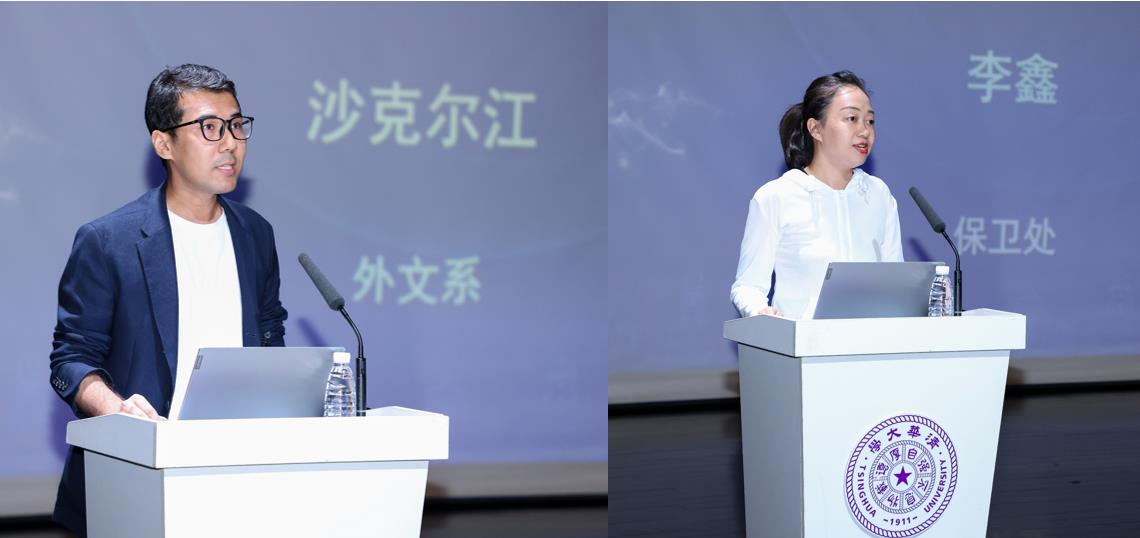 外文系沙克尔江和保卫处李鑫作为学员代表作交流发言。沙克尔江说,“通过这一年的系统学习,进一步提高和拓宽了报道选题的站位和视野,重新思考自己在工作中存在的问题和短板,为未来工作中积极发挥主观能动性、创新工作思路和方法注入了强大的动力。”李鑫表示,“全球传播能力提升计划”为自己提供了理论学习与互动交流的宝贵平台,课程学习解答了自己在外事工作中的困惑,使自己深刻认识到作为置身于世界大舞台的中国人,应思考如何讲好中国故事,传播好中国声音,展示真实、立体、全面的中国。